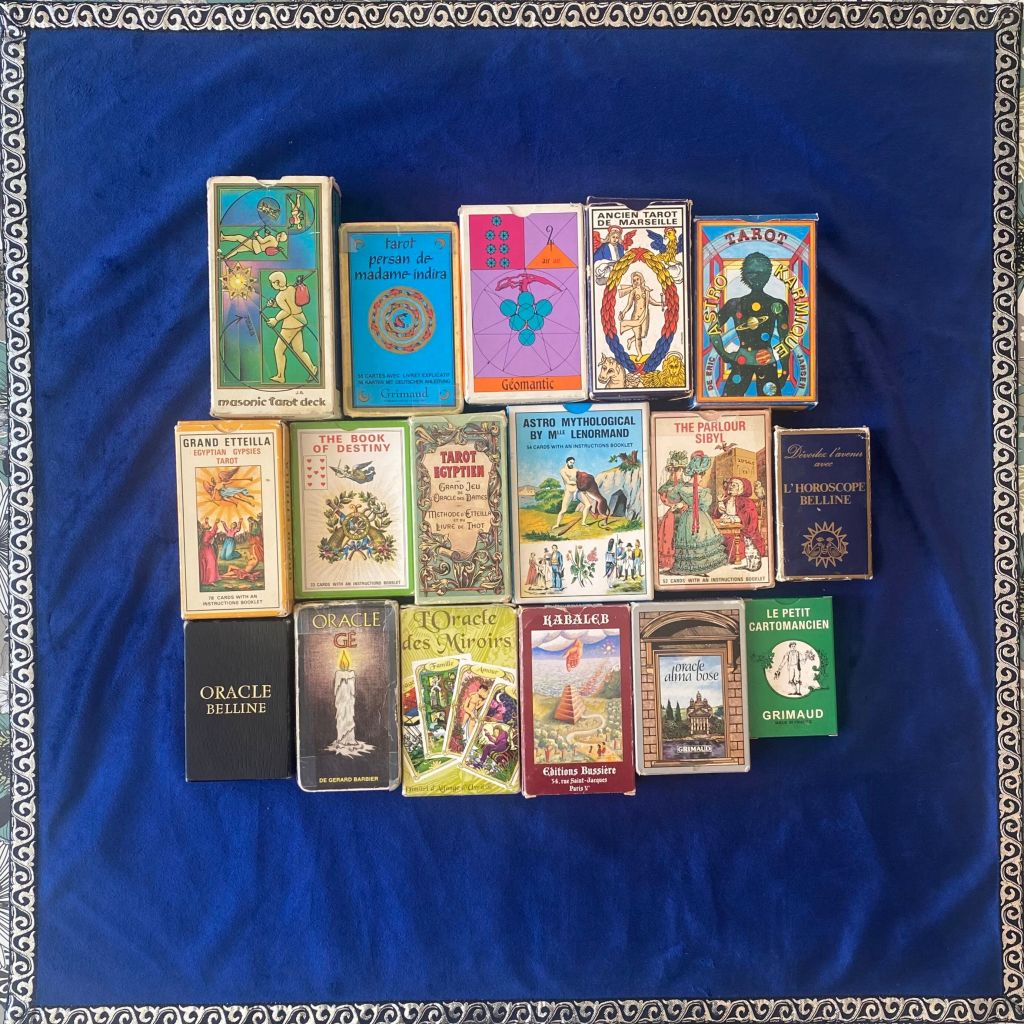 Le monde spirite, pour un médium, est intrusif, voire envahissant. Dans ce brouhaha, j’ai besoin de mes cartes (oracles, tarots) pour focaliser mon attention et me concentrer sur les demandes de la personne qui me consulte.